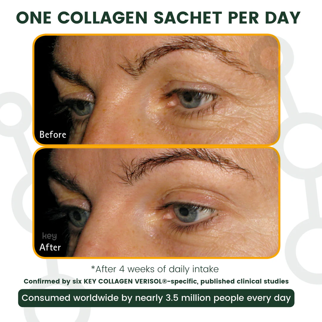 Research on our key ingredient, AVCENX Key Collegen, shows positive changes beginning around four weeks, with many users noticing enhanced skin radiance and hair vitality within 12 weeks. For best results, we recommend making Key Collagen part of your daily beauty routine.