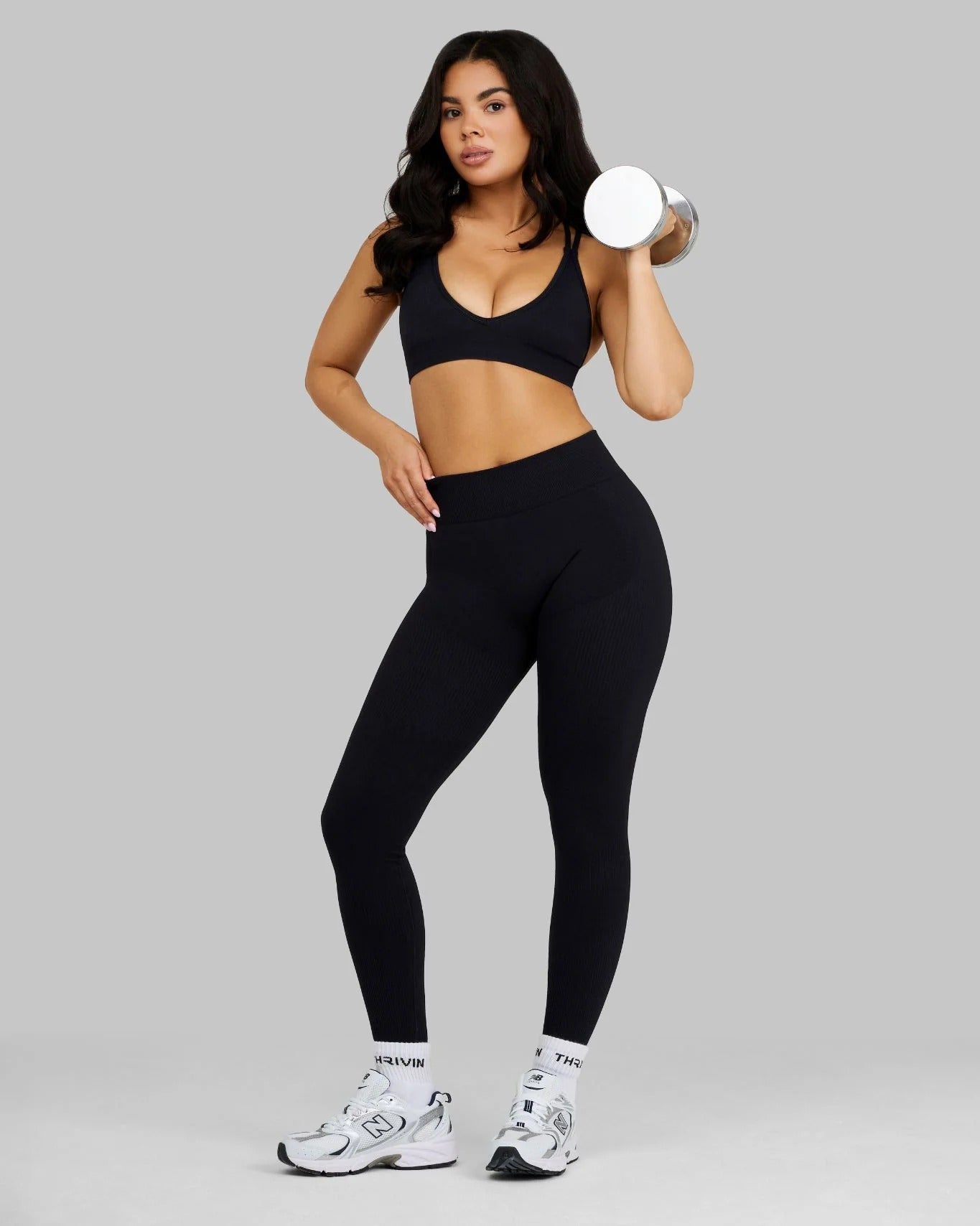 The THRIVIN Leggings, the ultimate shape wear. They feature ribbing detail around the upper thigh and waistband which provides a flattering compression. Designed with a minimal scrunch that is extra flattering, Solid buttery fabric for a smoothing effect, these will leave you feeling confident.